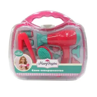 Парикмахерский набор «Само совершенство» от ТМ Mary Poppins поможет маленькой леди научиться придумывать собственные секреты красоты с самого детства! Игра поспособствует развитию у девочки фантазии и воображения, формированию вкуса и чувства стиля. Набор поставляется во вместительном чемоданчике с прозрачной лицевой частью. В нём очень удобно хранить и переносить игрушки: например, их можно взять с собой в гости, на прогулку, в детский садик и путешествия. Предметы в комплекте: - плойка (14х2х2 см); - расчёска (14х5х2 см); - электрический фен (16х6х14 см); - 2 бигуди (5х2,5х2,5 см); - безопасные ножницы (11х6х0,5 см); - безопасное зеркальце (11х1х10 см); - 2 заколки клик-клак (4х2х1 см); - 2 заколки-крабика (5х3х1 см). Размеры игрушек в скобочках указаны в формате (Длина х Ширина х Высота). Фен работает от 2-х батареек типа ААА на 1,5 V (не входят в комплект). Материал изготовления: пластмасса. Рекомендованный возраст: 3 года +