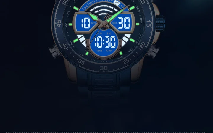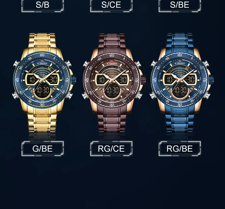 -Бренд: NAVIFORCE -Механизм: кварцевый механизм + двойной дисплей -Пол: Мужской -Материал ремешка: нержавеющая сталь -Длина ремешка: 24 см -Ширина ремешка: 2,4 см -Диаметр корпуса: 45,5 см -Толщина корпуса: 1,7 см -Вес изделия: 180 г
