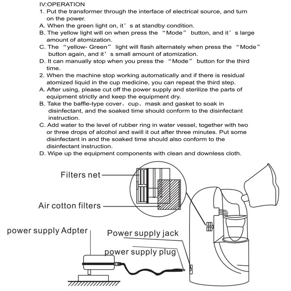 1 х Портативный Небулайзер с вилкой переменного тока (мощность: 110 В ~ 240 В (подходит для всей страны мира), мы предоставляем штепсельную вилку Великобритании/США/ЕС, вы можете выбрать его в соответствии с вариантами)