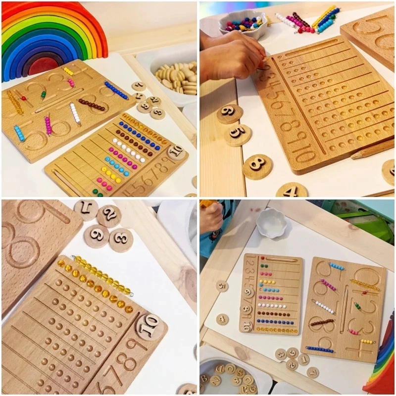 Занятая доска Монтессори держатель для бусин Монтессори игрушки 2 года Алфавит обучающая доска деревянные цифры сенсорная детская игрушка 2