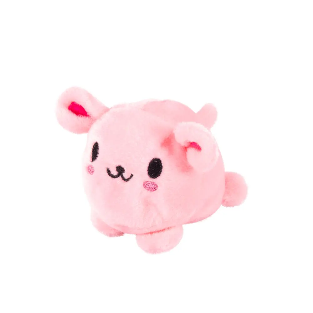 Материал игрушки – текстиль приятного розового оттенка. Кролик имеет небольшие ушки, лапки и крохотный хвостик. Черные глазки, добродушная улыбочка и милые розовые щечки придают игрушке особое очарование. Размер мячика – всего 7 сантиметров, он удобно помещается в детской руке.