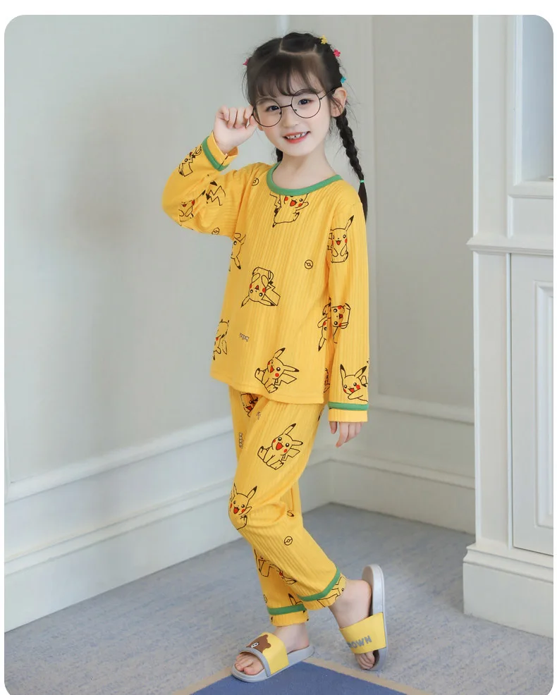 Комплекты детской одежды, одежда для сна, детский пижамный комплект с мультяшным принтом, пижамы для маленьких девочек и мальчиков, осенние пижамы