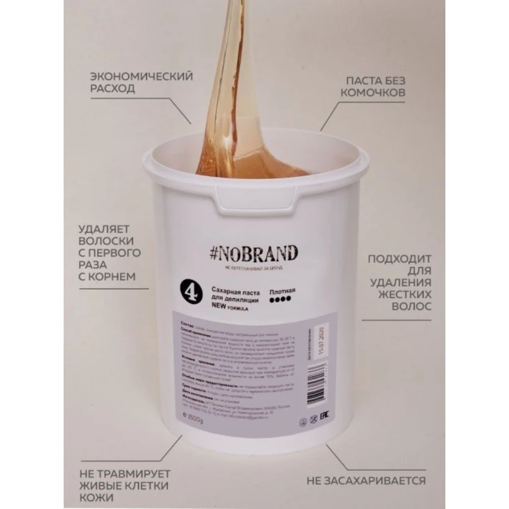 Сахарная паста NO BRAND плотная предлагается для работы в помещениях с любой влажностью и температурой. Подходит для удаления нежелательных волос в зонах бикини и подмышечных впадин. Идеальна для новичков
