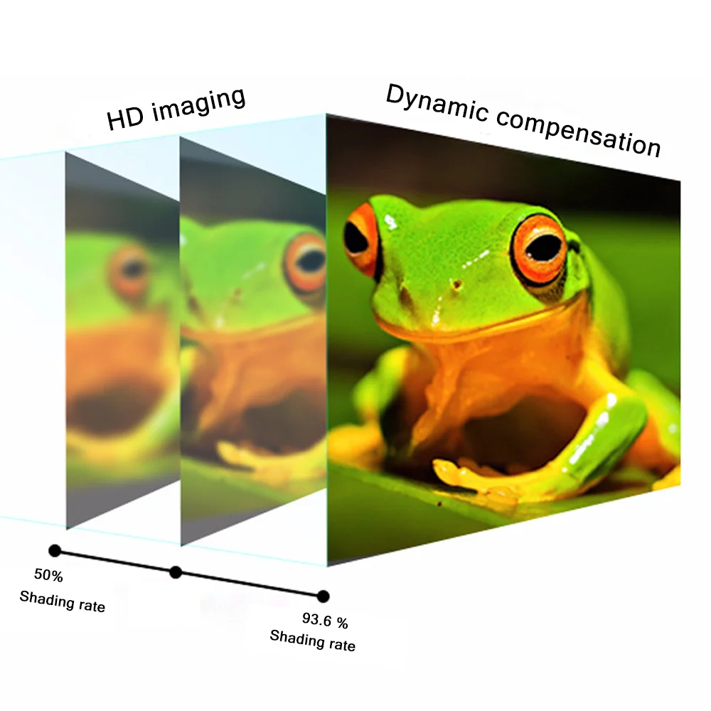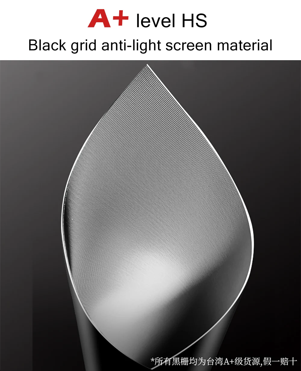 Черная сетка HS принимает кристаллическое покрытие с высоким коэффициентом усиления, в сочетании с уникальным принципом физического поглощения окружающего светильник, для достижения более высокого эффекта изображения и контрастного усиления, чем Белая стена