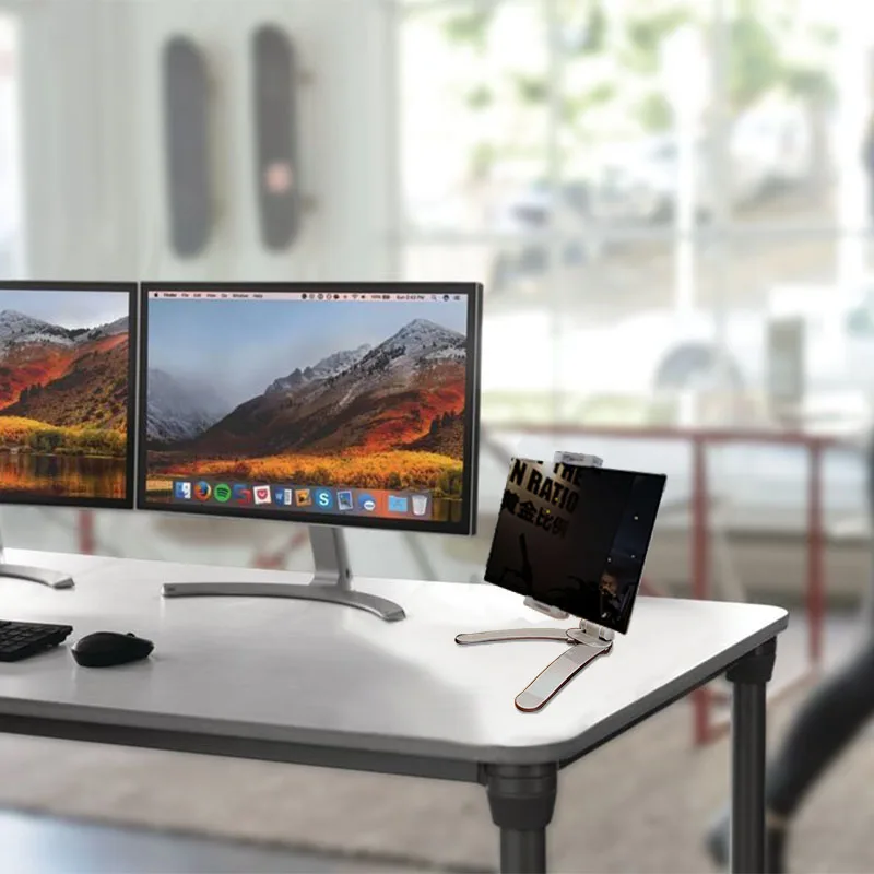 В настоящее время мы переходим к эпохе домашних и видеоконференций. Получите профессиональный держатель для них. Для видеозвонков и настройки с двойным экраном. Максимальная высота 40 сантиметров, подставка удерживает ваш телефон или планшет до вашего комфортного уровня глаз и делает ваше портативное устройство вторым экраном. Свободные руки позволяют легко делать ручные жесты.