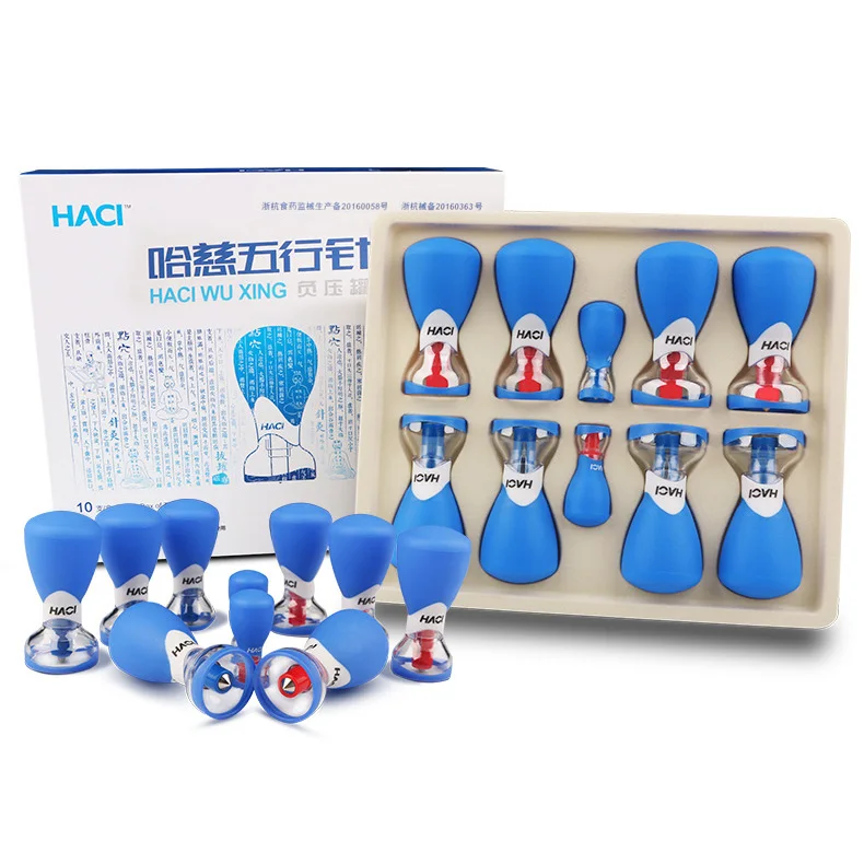 Новейшие 10 шт. HACI WU XING игольчатые биполярные сильные магнитные вакуумные акупунктурные Банки Набор всасывающих банок Магнитная терапия