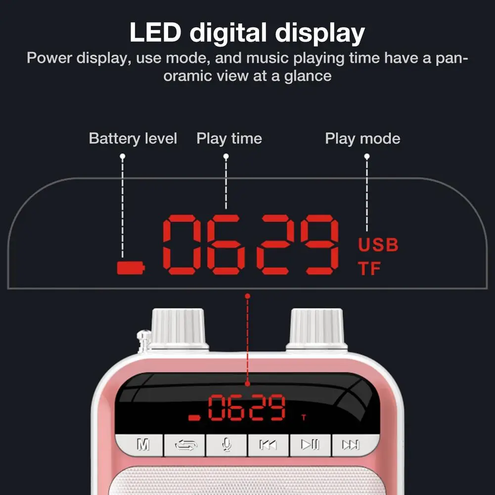 4. Голосовой усилитель Bluetooth: портативный голосовой усилитель с микрофоном-это не только усилитель, но и портативный bluetooth-динамик. Вы можете передавать свою любимую музыку с любого мобильного устройства с поддержкой Bluetooth до 10 метров.