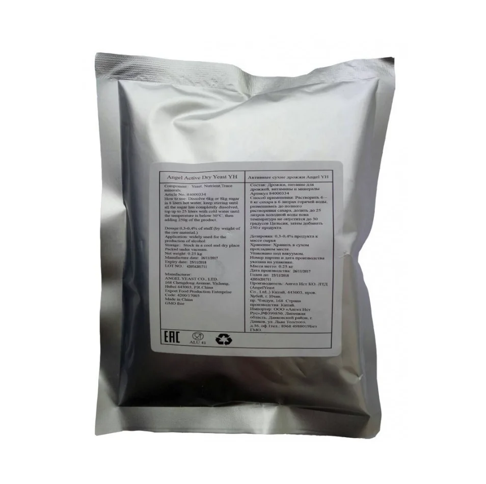 ДрожжиАктивные сухие дрожжи Angel YHВ фасовке 250 грамм от широко-профессионального китапроизводителя-это спиртовой дрожжевой штамм для динамичного брожения сырья, являются, с защитой, классидро, но, с защитой, активными, с неодинаковыми вставками и вставками в полурукаве для ежедневного брожения останавливающихся запахов брожения сырья. Фасовка 250 грамм, светоотражатель на 80-100 литров браги, что говорит о светочницеАнгел YH.