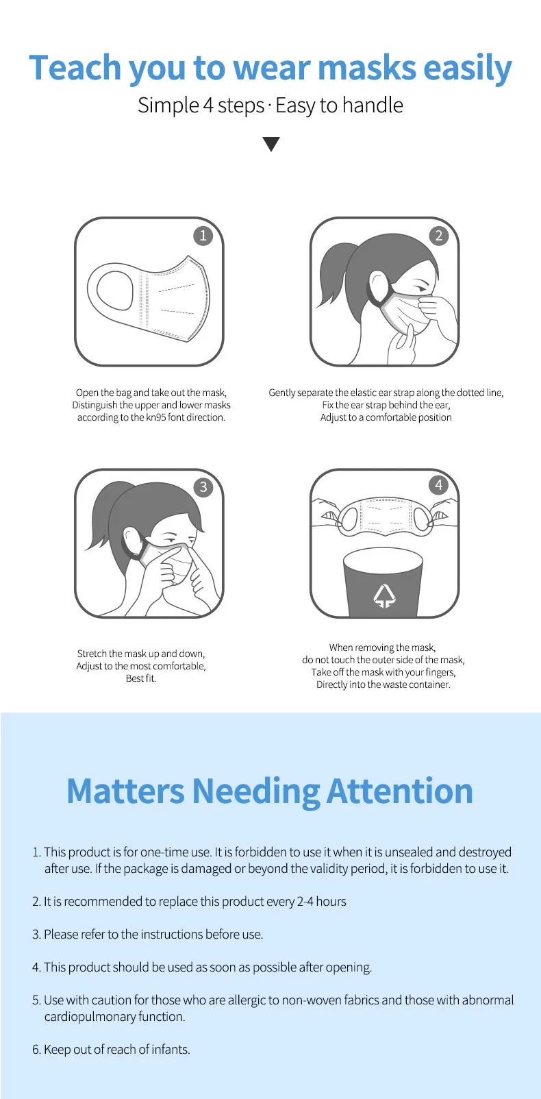 - KN95 маски, гигиенические и удобные для использования.Изготовлен из высококачественного материала, безопасный, мягкий и удобный.95% фильтрации, обеспечивают защиту от пыли для вас.Защитите вас от воздушных частиц и загрязнения.Эластичные ремешки и регулируемый зажим для носа для различных форм и размеров лица. Идеально подходит для ежедневного использования и активного отдыха.Защита от пылиАнти PM2.5Фильтр PM2.5 и вредное вещество в воздухе, Защитите ваше здоровье!Цвет: белыйТип: Ношение ушейМатериал: Высококачественная Нетканая ткань и т. Д.Характеристики:Материал: Нетканая ткань + фильтрующий слойСтандарт: GB2626-2006Класс защиты: маска kn95 ffp2Скорость фильтрации: ≥ 95% (0,075мкм частиц)Указанный Товар производится и распространяется за рубежом и подпадает под действие законодательства страны его происхождения.Применение: Повседневная жизнь, Заводская мастерская, спа, школа, рабочие места и т. Д.