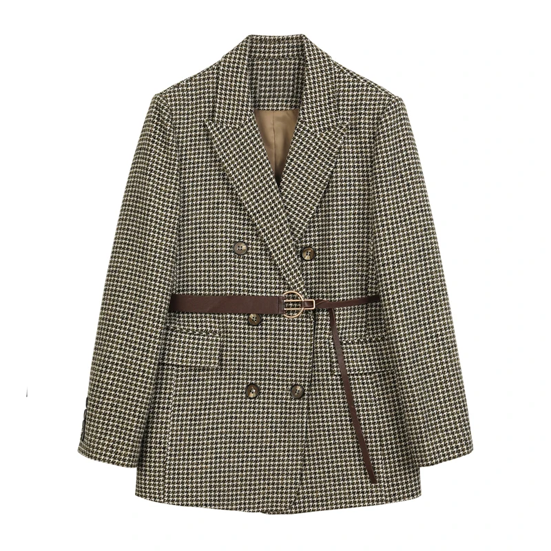 Отзывы о Женский клетчатый блейзер с длинным рукавом поясом | Женская одежда