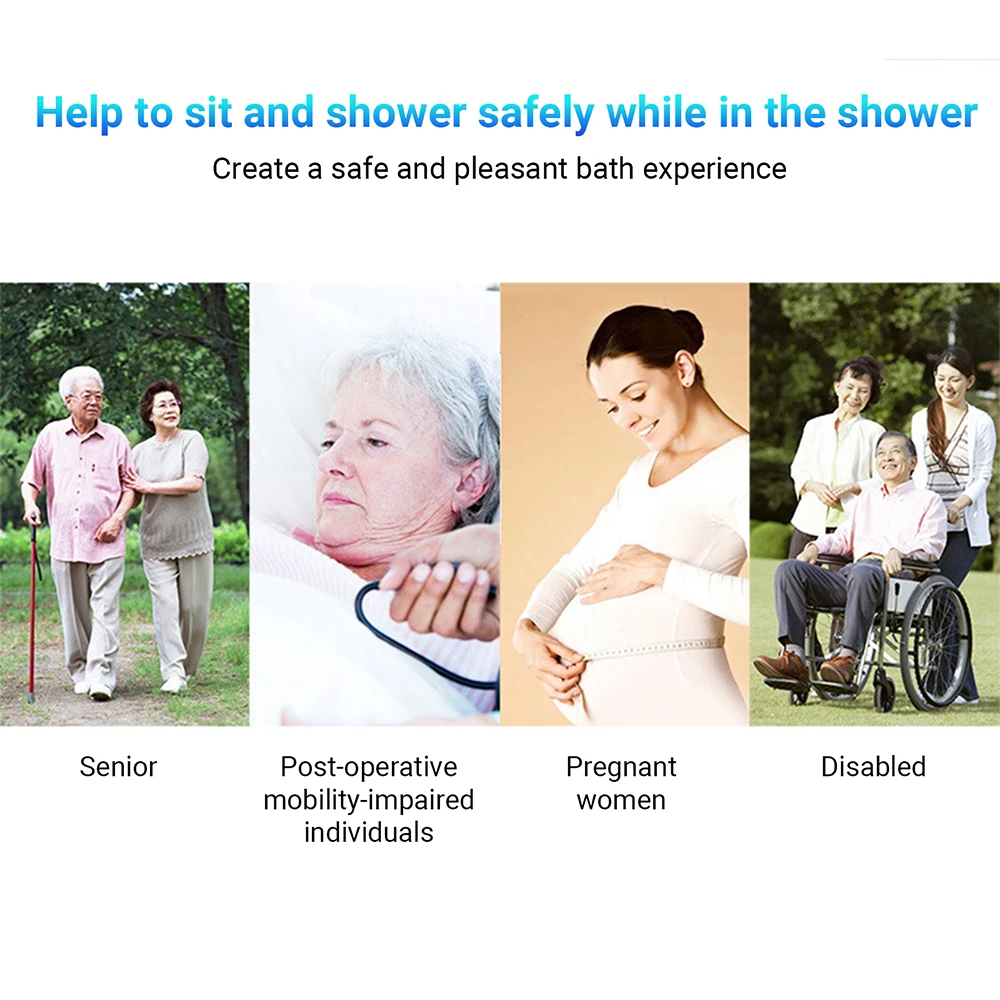 Прочный и крепкий:Душевая Скамья из прочного алюминиевого сплава обеспечивает отличную несущую способность и долговечность.