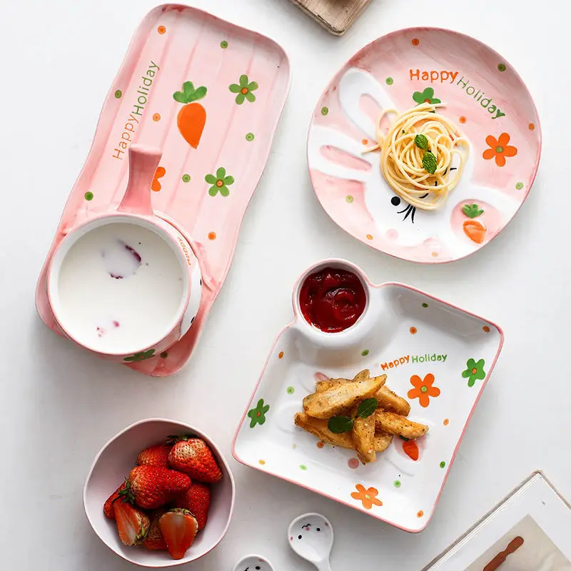 Отзывы о Новая восхитительная посуда с кроликами детская мультяшная чашка для дома и