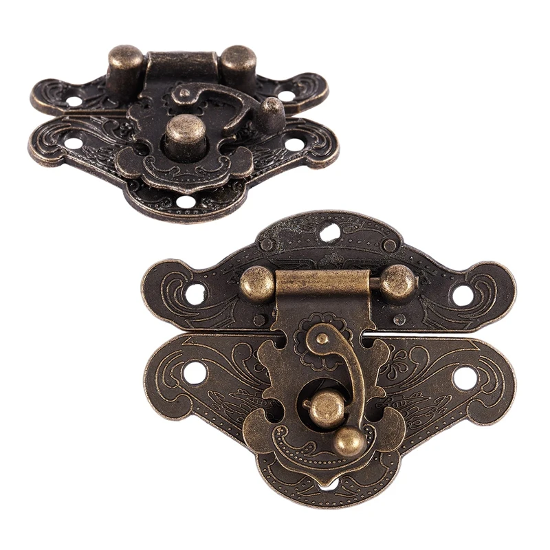 Новинка, 2 комплекта, антикварная ретро винтажная декоративная защелка, деревянная шкатулка для ювелирных изделий с застежкой, нагрудный замок, очень маленький и средний