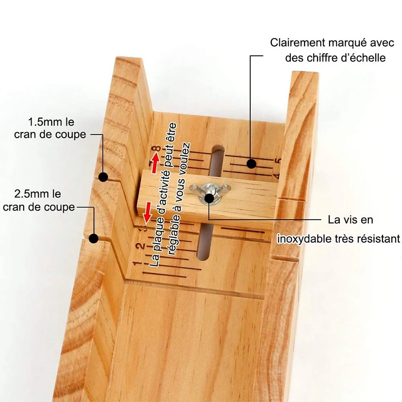 Регулируемый резак для прессформы для деревянного мыла-есть два вырезных выреза 1,5 мм и 2,5 мм, от 1 до 8 четко обозначены числами масштаба, активная пластина может регулироваться по вашему вкусу, идеально подходит для резки мыла, ремонт мыла, разделение мыла и адаптируется к большему размеру.