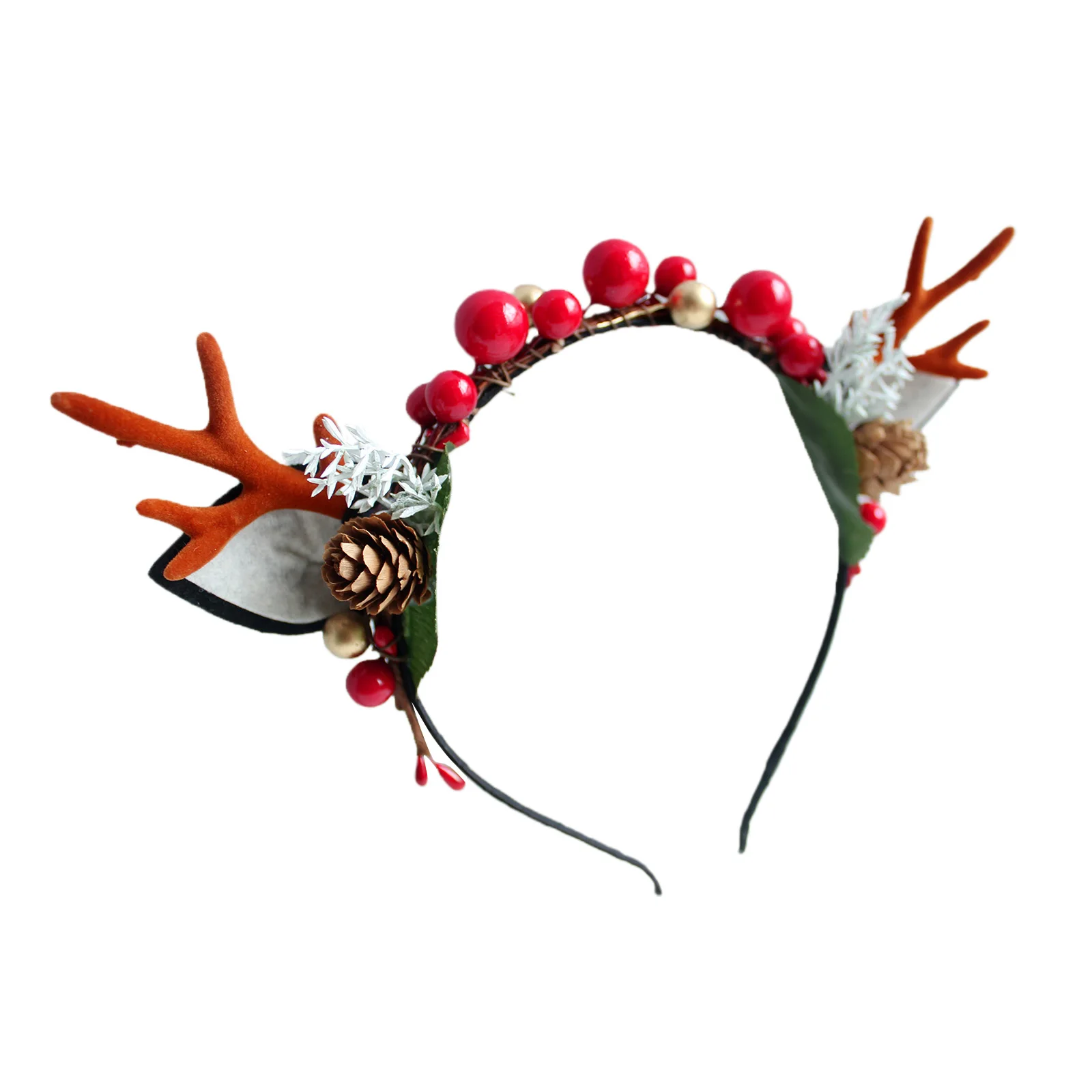 Олень обручи с оленьими рогами, милые красные ягоды сосновый конус животных уши обруч для волос вечерние сувениры для детей и взрослых
