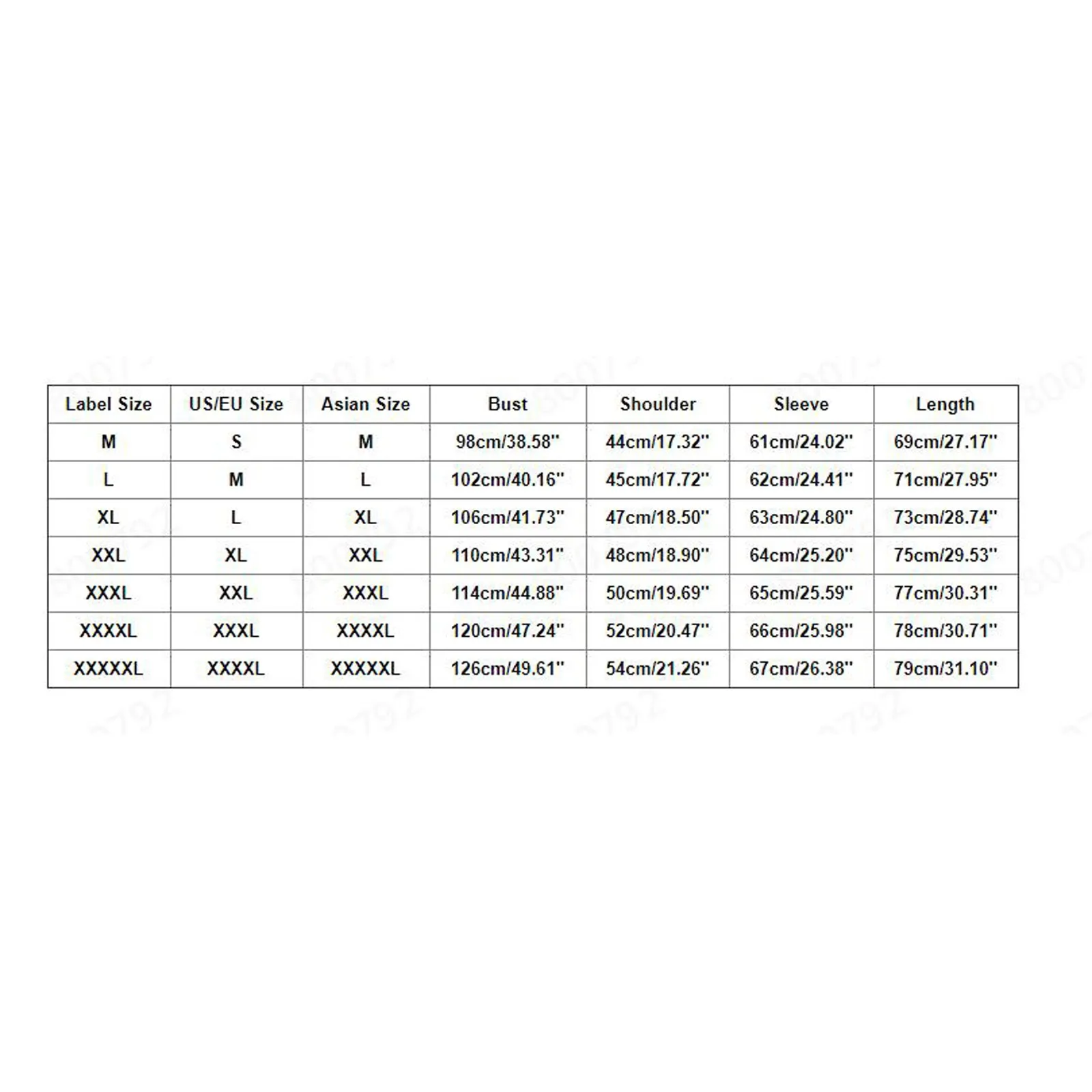 | Этикетка Размеры | US/EU Размеры | Азиатский Размеры | Обхват груди | Сумка на плечо | Рукава | Длина |