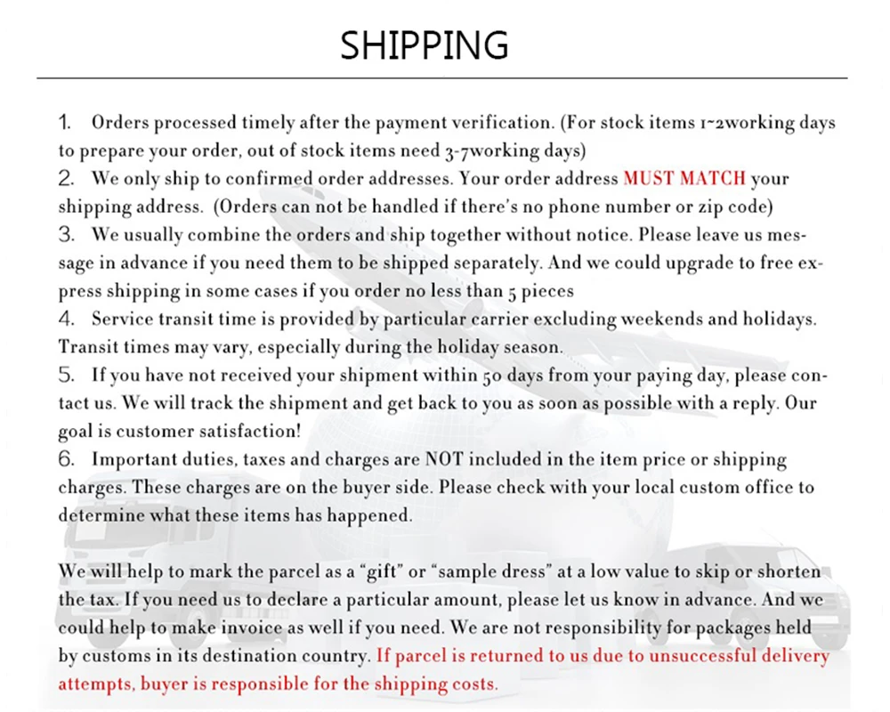 1. Из-за разницы между различными мониторами изображения могут не отражать фактический цвет изделия. 2. Сравните размеры деталей с вашими, пожалуйста, учитывайте погрешность в 1-3 см из-за ручного измерения. 3. Пожалуйста, оставьте сообщение, прежде чем дать плохие отзывы, если продукты имеют некоторые проблемы. 4. Спасибо за понимание.