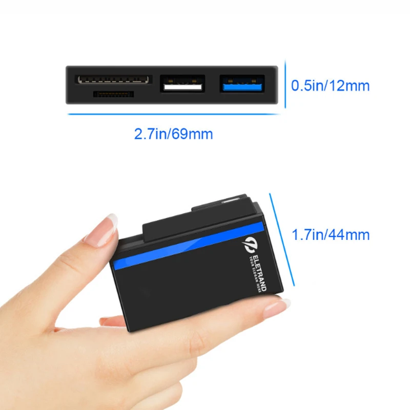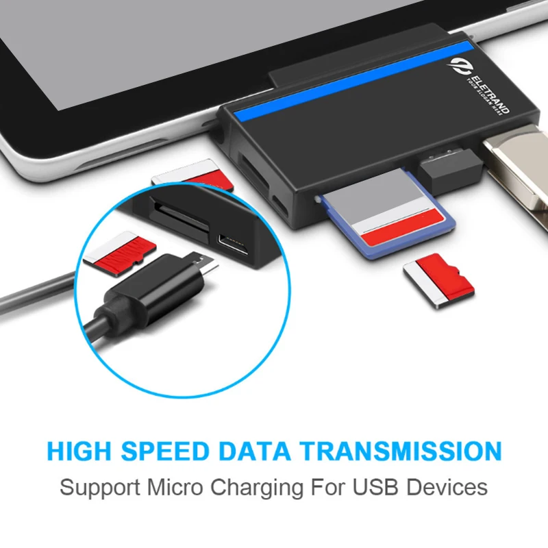 Быстрое чтение USB 3,0 --- комбинированный адаптер-концентратор с 2-портовым комбинированным интерфейсом USB 3,0, совместим с устройствами USB 2,0/1,1/1,0.
