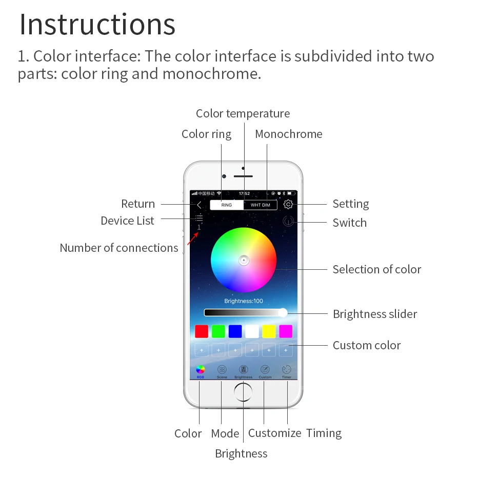 Наш контроллер светильник щения-это контроллер bluetooth, вам просто нужно установить одно приложение, чтобы контролисветильник с помощью мобильный телефон.