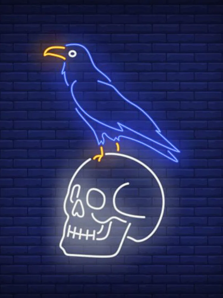 Отзывы о Неоновая вывеска для вороны сидящая на человеческом светильнике Череп пивной