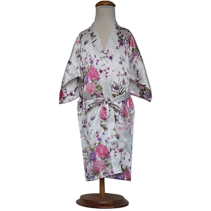 Детское Шелковистое атласное кимоно для девочек, халат, одежда для сна для свадьбы, спа, вечерние