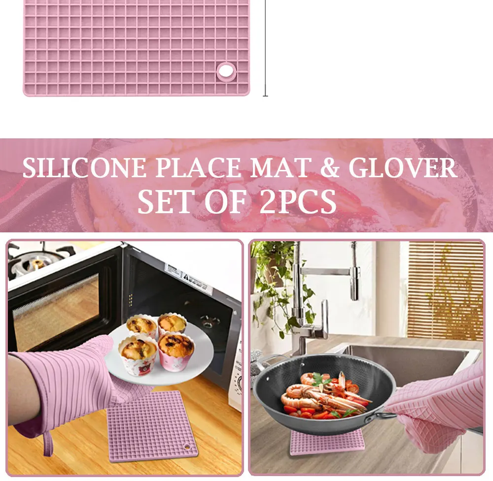 [Термостойкие кухонные перчатки] Наши силиконовые перчатки с толстой подкладкой, которые обеспечивают двойную изоляцию и удлиненную перчатку не только для защиты ваших рук от ожогов, но и для защиты предплечья. Поставляются с отличными термостойкими силиконовыми салфетками, которые защищают ваши столешницы или столы от повреждений. Они выдерживают температуру от-40 °F до 446 °F (от-40 °C до 230 °C).
