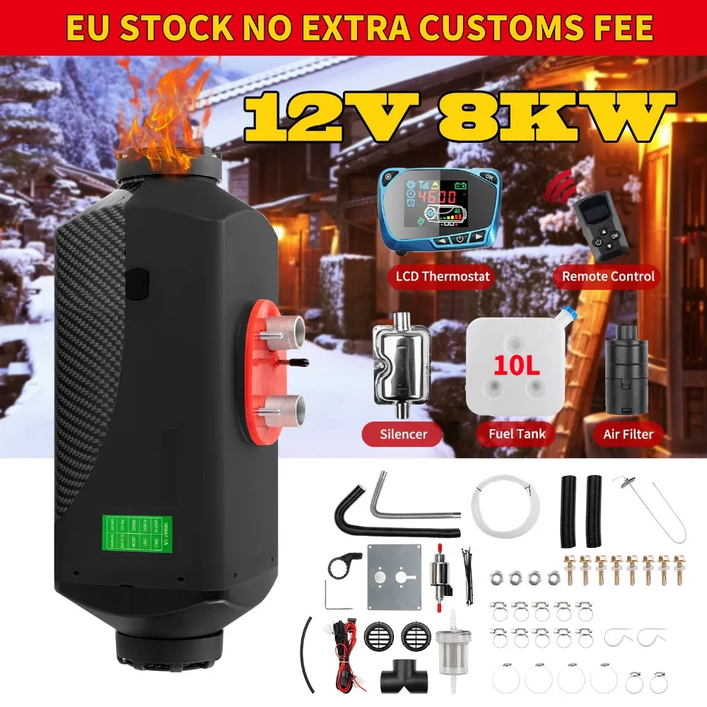 8000W 12V Дизельный подогреватель воздуха 8KW автомобильного обогревателя 10L топливного бака с ЖК-дисплей дистанционного Управление вентиляционный термостат дом на колсахНагреватель может быть применен для нагрева кабины грузовых автомобилей, фургонов, аккумуляторных батарей автомобилей и всех видов других транспортных средств.