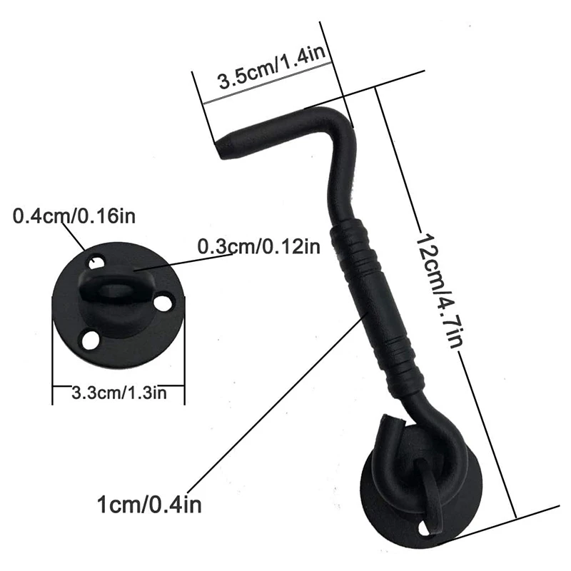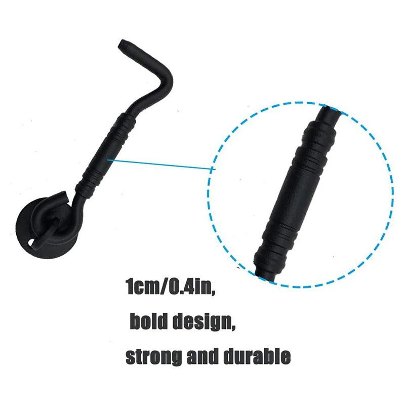 Легко установить-Тип крепления винта, включает замок застежки крюка и глаза, с соответствующими крепежными винтами для крепления к дереву или другим плоским поверхностям, легко крепится, что поможет вам безопасно зафиксировать кабельный крюк.