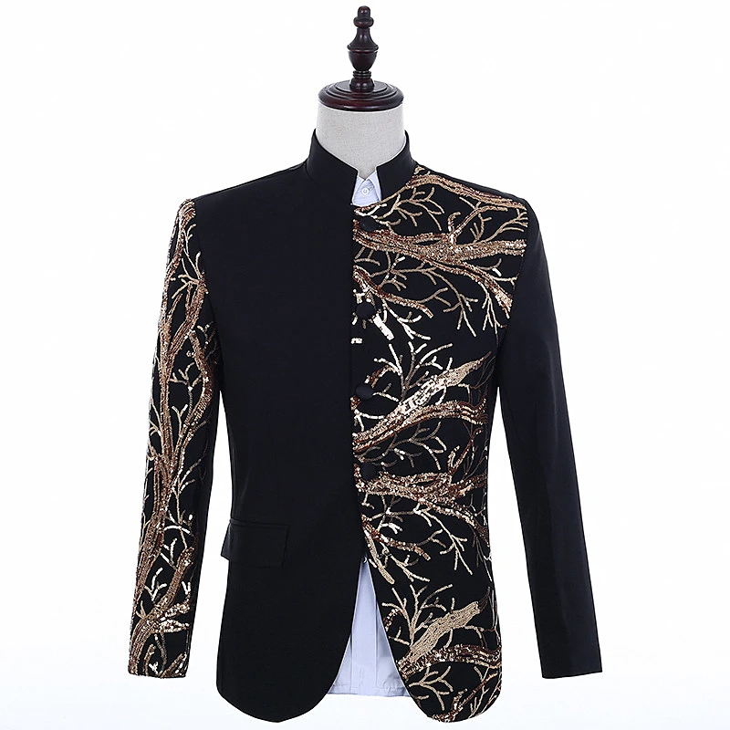 Отзывы о Однобортный костюм для сцены мужской необычный пиджак с блестками ночного клуба