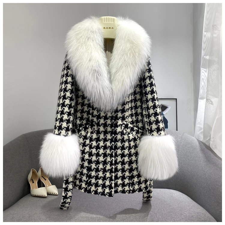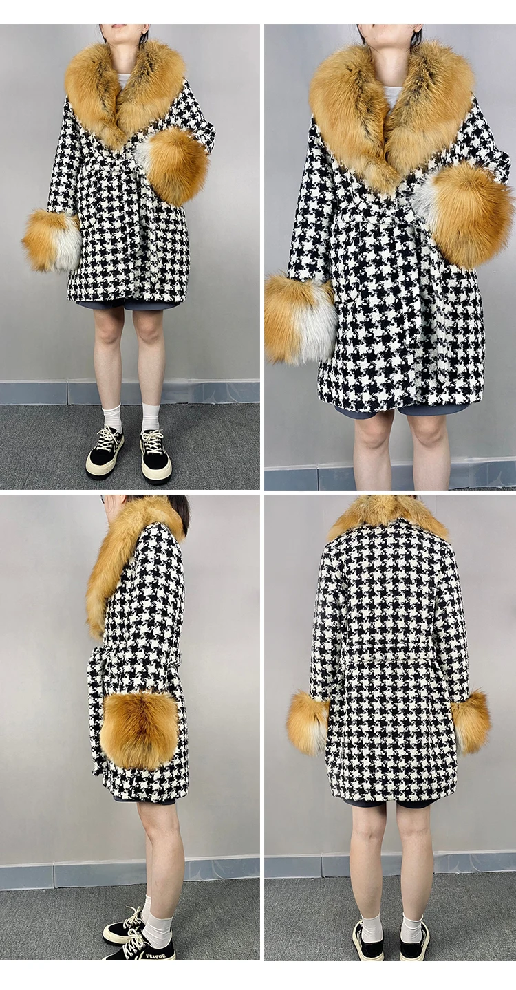 1. Европейский фирменный дизайн, Воротник из натурального Лисьего меха, роскошное шерстяное пальто