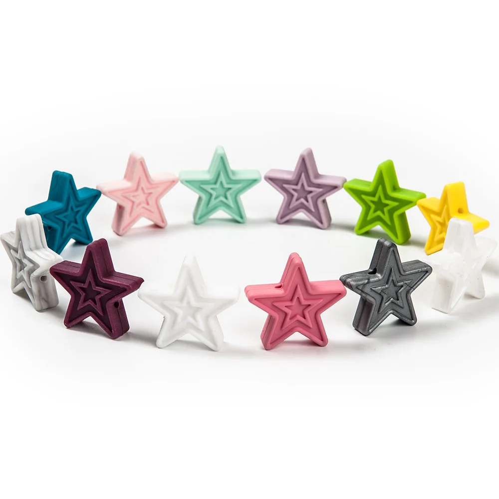 This Listing for 30*8MM Star Beads Silicone Beads Baby Teethers 10 piece. Our product includes 9 Colors for choosing. All the items in our store are available to choose colors. Please leave a message or comment when you place the order, otherwise we will send random colors.