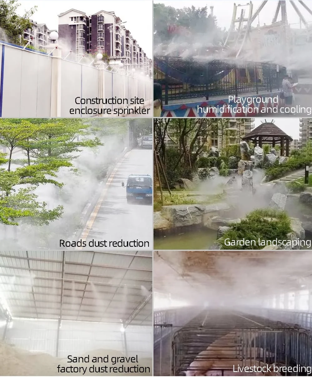 Это оборудование применимо не только к крыше, саду и коридору для снижения температуры и ландшафтного дизайна, но и является лучшим вариантом для увлажнения и охлаждения на заводе, выращивании и теплице.