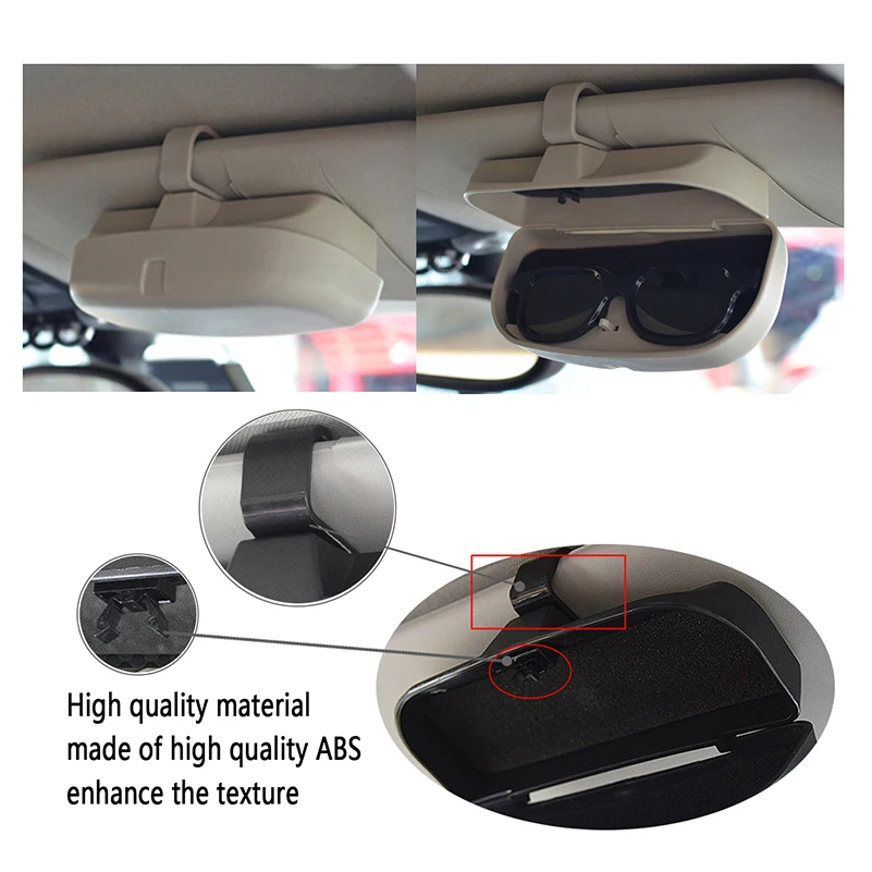 Универсальный Чехол для очков коробка для всех моделей автомобилей   Особенности: 1. 100% новый. 2. Материал: АБС-пластик. 3. Цвет: серый, черный, бежевый. 4. Научный дизайн, нет необходимости в установке, удобно. 5. Изготовлен из высококачественного АБС-пластика: прочный улучшает текстуру. 6. Универсальный: подходит для большинства моделей очков и автомобилей.   Примечание: -Пожалуйста, подтвердите размер перед оформлением заказа. -Этот товар может хранить солнцезащитные очки, деньги, ключи от машины, визитки и т. Д. -Различные мониторы могут показать разницу в цвете, пожалуйста, обратитесь к товарам, которые вы действительно получили.   Посылка: 1 шт. чехол для хранения солнцезащитных очков (очки в комплект не входят) M2