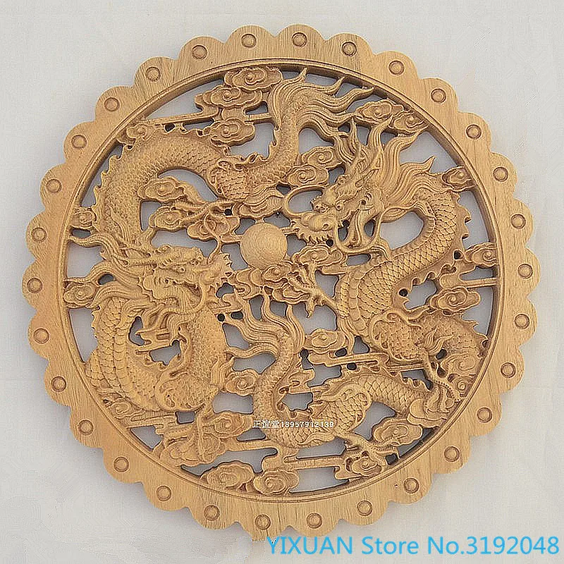 Двойной играющий Дракон жемчуг круглый резьба по дереву s камфора твердой древесины резьбы ремесла в китайском стиле полые украшения настенный