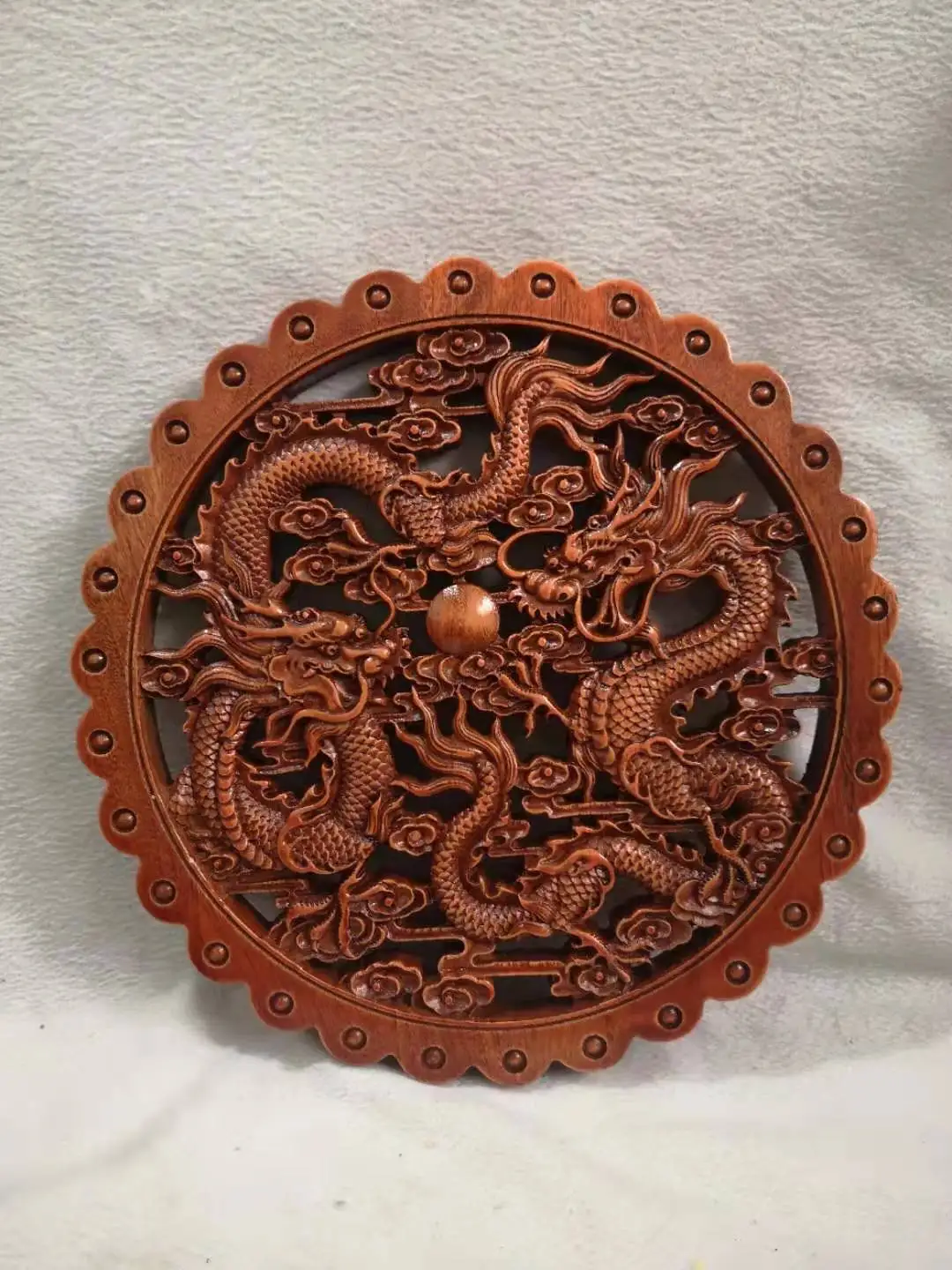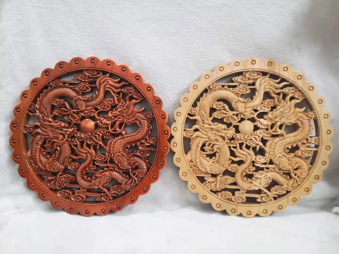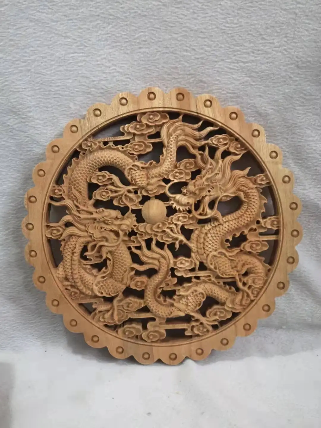 Двойной круглый кулон с жемчугом дракона [Размер] 28 см в диаметре и 2 см в толщине Высокое качество древесина Камфоры Этот продукт разделен на два типа, материал-камфорная древесина, один-технология бревна, другой-технология распыления