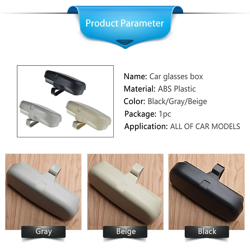 Универсальный Чехол для очков коробка для всех моделей автомобилей Особенности: 1. 100% новый. 2. Материал: АБС-пластик. 3. Цвет: серый, черный, бежевый. 4. Научный дизайн, нет необходимости в установке, удобно. 5. Изготовлен из высококачественного АБС-пластика: прочный улучшает текстуру. 6. Универсальный: подходит для большинства моделей очков и автомобилей. Примечание: -Пожалуйста, подтвердите размер перед оформлением заказа. -Этот товар может хранить солнцезащитные очки, деньги, ключи от машины, визитки и т. Д. -Различные мониторы могут показать разницу в цвете, пожалуйста, обратитесь к товарам, которые вы действительно получили. Посылка: 1 шт. чехол для хранения солнцезащитных очков (очки в комплект не входят)