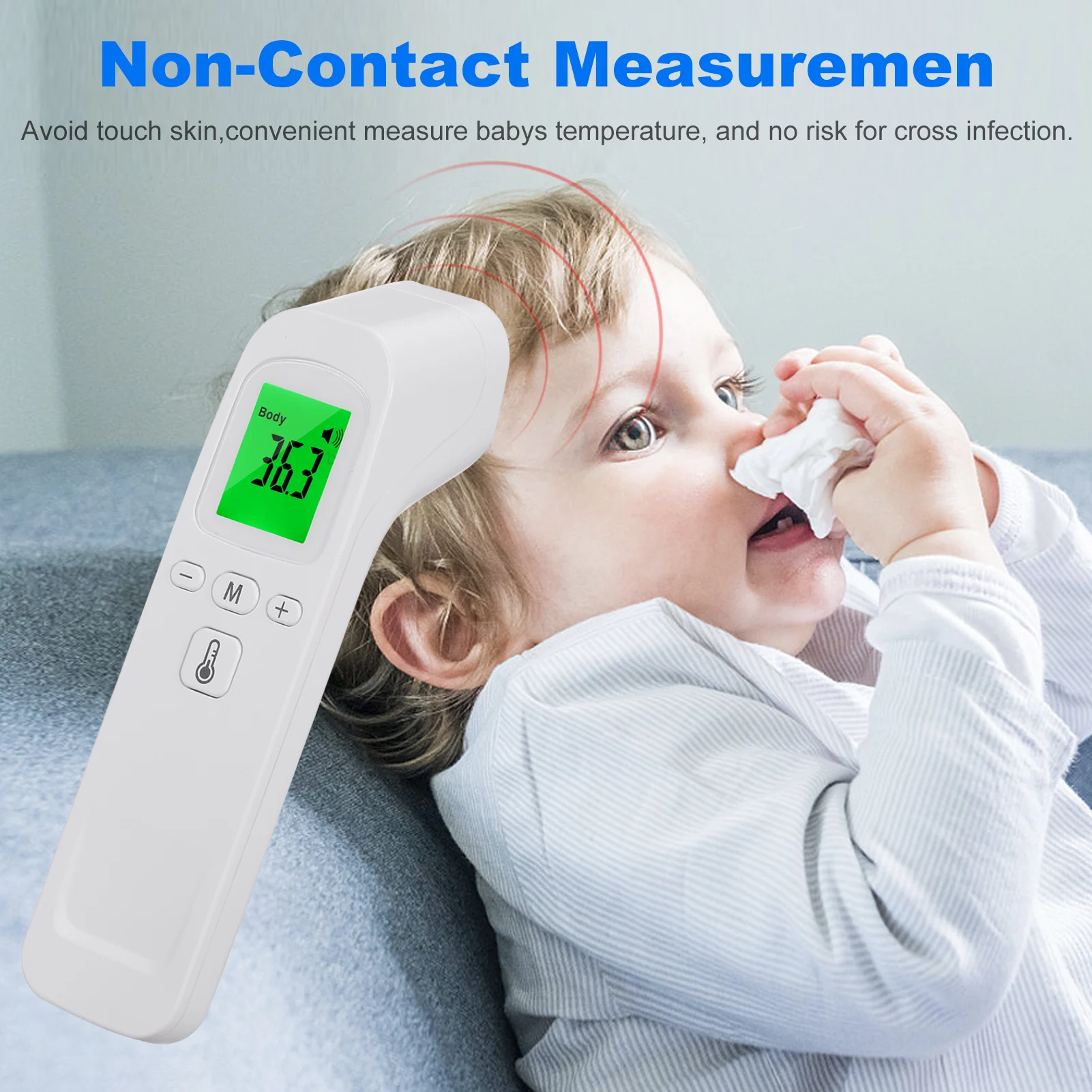 Бесконтактное измерение --- портативный цифровой инфракрасный термометр Температурный пистолет. Избегайте касания кожи, удобно измеряйте температуру малышей и не подвергайте опасности перекрестной инфекции.