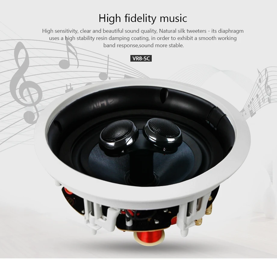 Oupushi VR8-SC 10-80 Вт Полнодиапазонный настенный динамик, двухканальный, с низким сопротивлением нагрузки