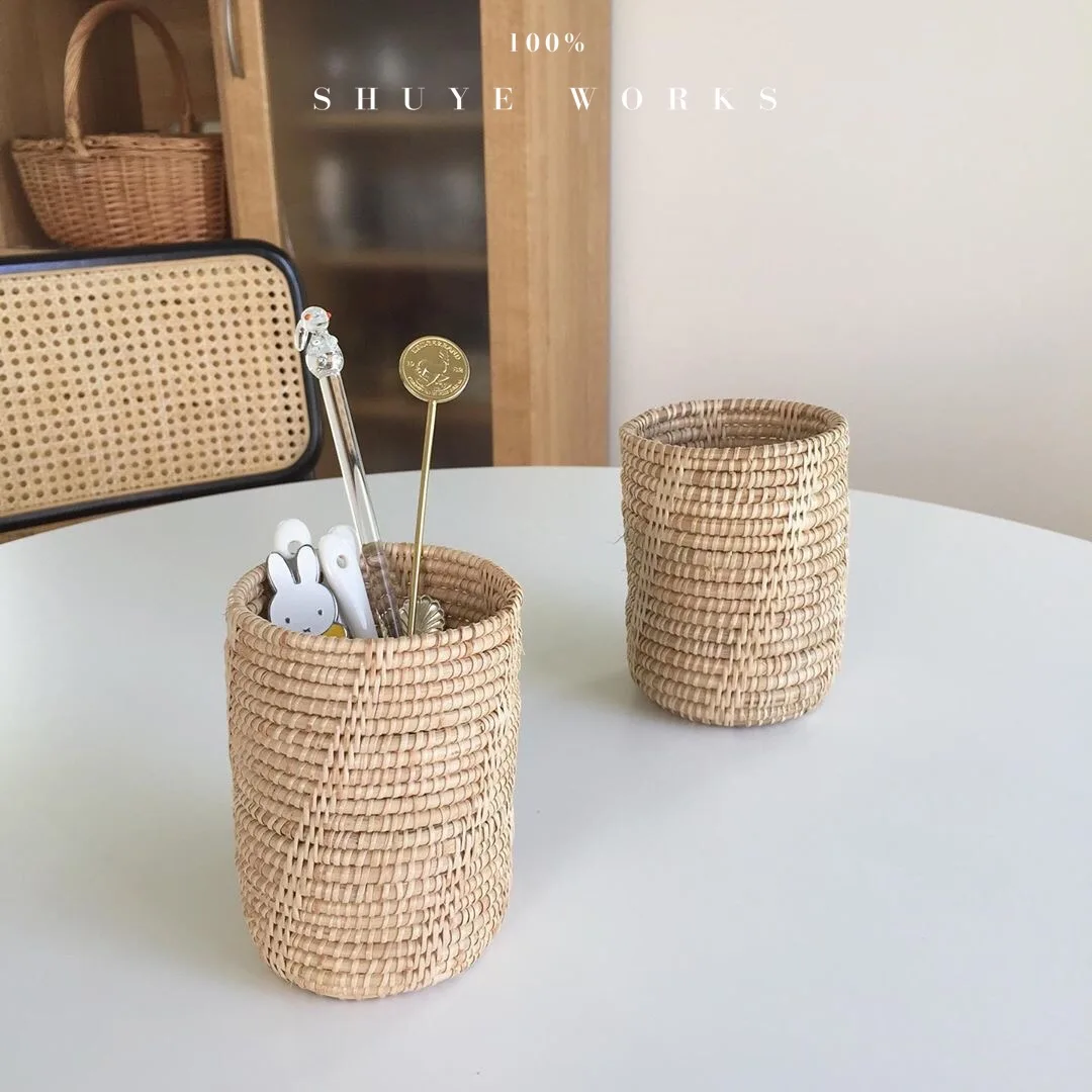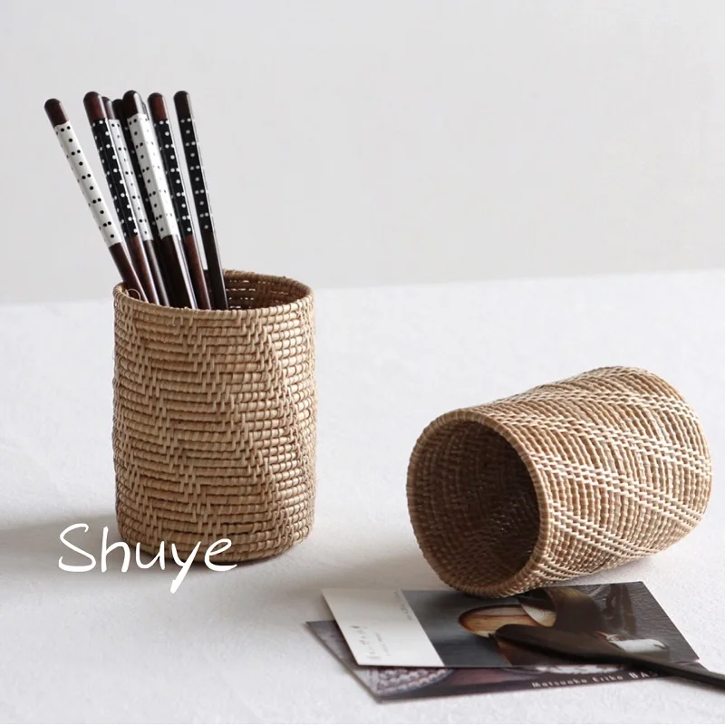 Отзывы о Handmade Rattan Tableware Storage Tube Student Stationery Box Kitchen Master Basket Round | Дом и сад