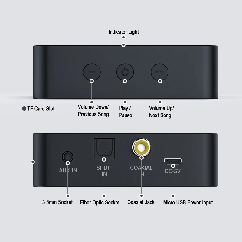 1. Оптический/коаксиальный/AUX/TF карта четыре в одном Bluetooth 5,0 o передатчик