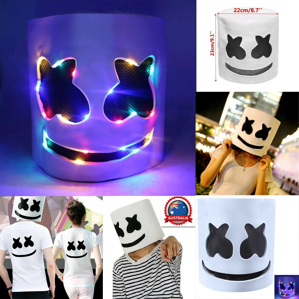 Это светодиодный marshmello-маска диджея шлем на всю голову Косплей marshmallow-bar музыкальные вечерние реквизит. Широкое применение для фестивалей, бары, кафе, Танцы залы, вечеринок по случаю Дня рождения, развлечения, карнавалов, пивные фестивали, и другие вечерние реквизит шлем групповые мероприятия.
