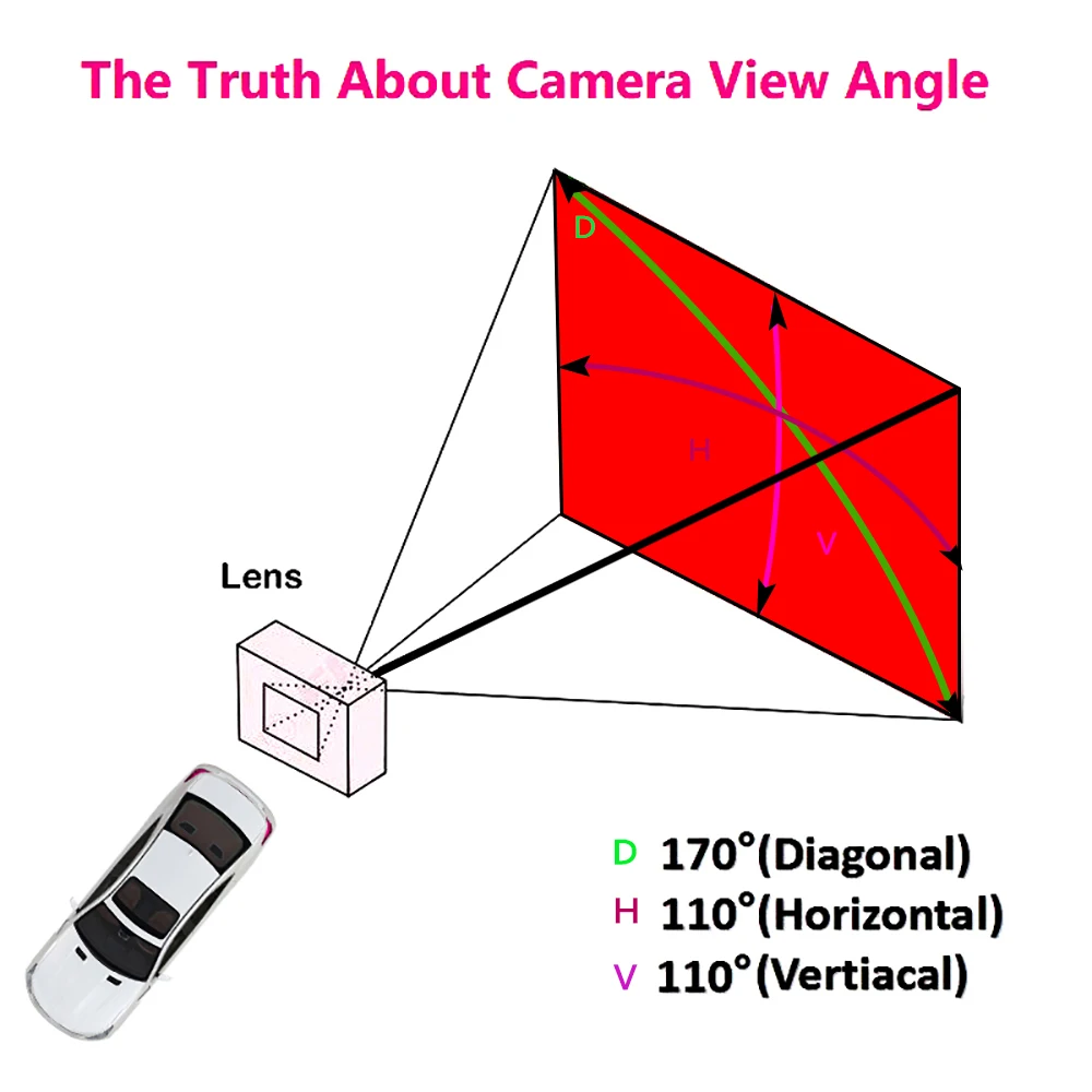 - Большой угол обзора 170 градусов, отвечает всем требованиям вождения вперед или резервного копирования.