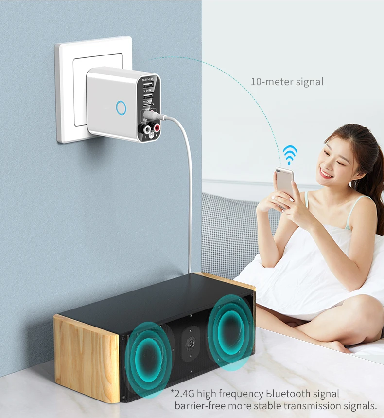 Вы можете использовать 3,5 мм jack или RAC интерфейс для подключения динамиков. И подключите адаптер через мобильный телефон или Bluetooth-плеер. Вы можете наслаждаться беспроводной музыкой свободно
