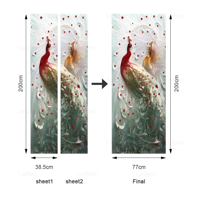Отзывы о Самоклеящиеся 3D наклейки на дверь синие золотые павлин цветок пейзаж