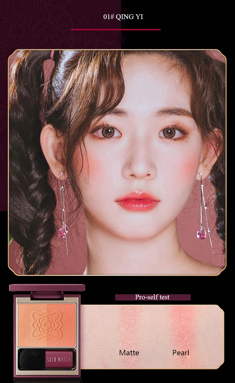 1. Один цвет: Возьмите кистью определенное количество одного цвета, стряхните лишнюю пудру, аккуратно нанесите кисть на щеки. 2. Смешанные цвета: обведите и Смешайте два цвета с кистью, попробуйте смешанный цвет на тыльной стороне руки, аккуратно расчешите щеки; Или аккуратно расчешите матовые румяна и затем мелкие сверкающие перламутровые румяна на щеках.