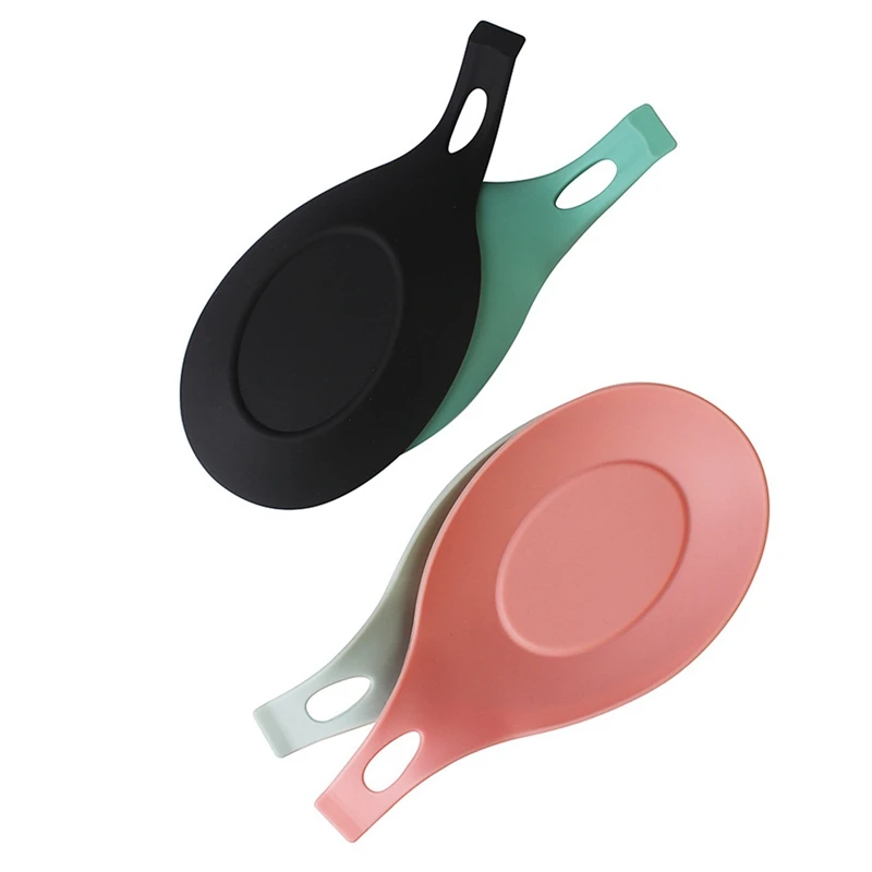 Отзывы о 4 шт. кухонная силиконовая ложка для отдыха гибкая миндалевидная форма подставка