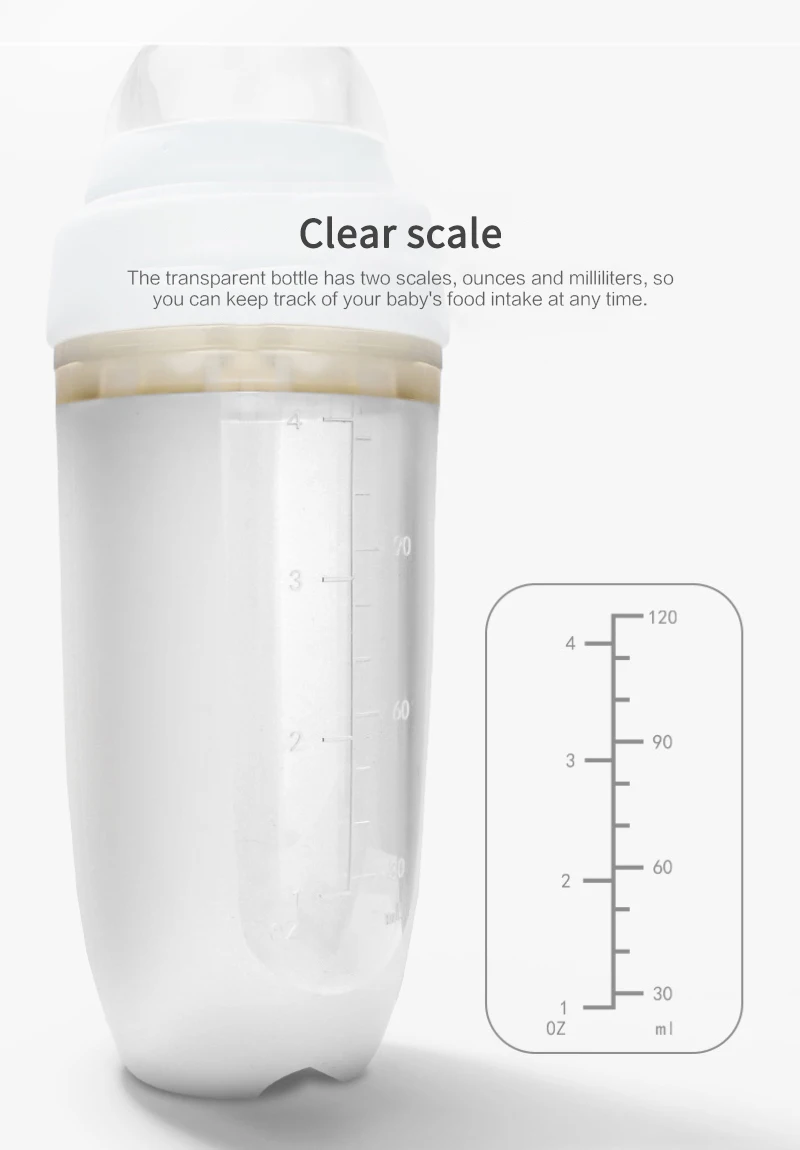 Тело бутылки обладает ясным масштабом, который четко знает потребление пищи для ребенка.