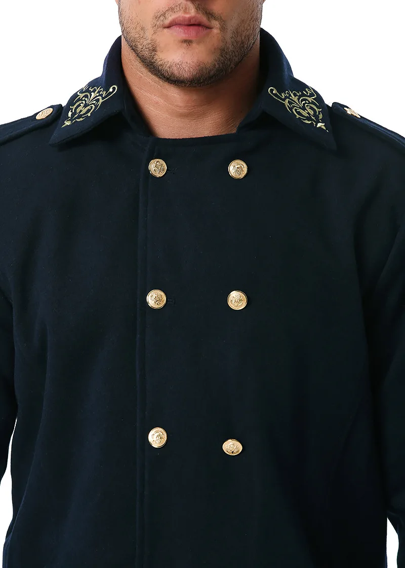 Отзывы о Мужской двубортный шерстяной плащ в британском стиле с золотистой вышивкой