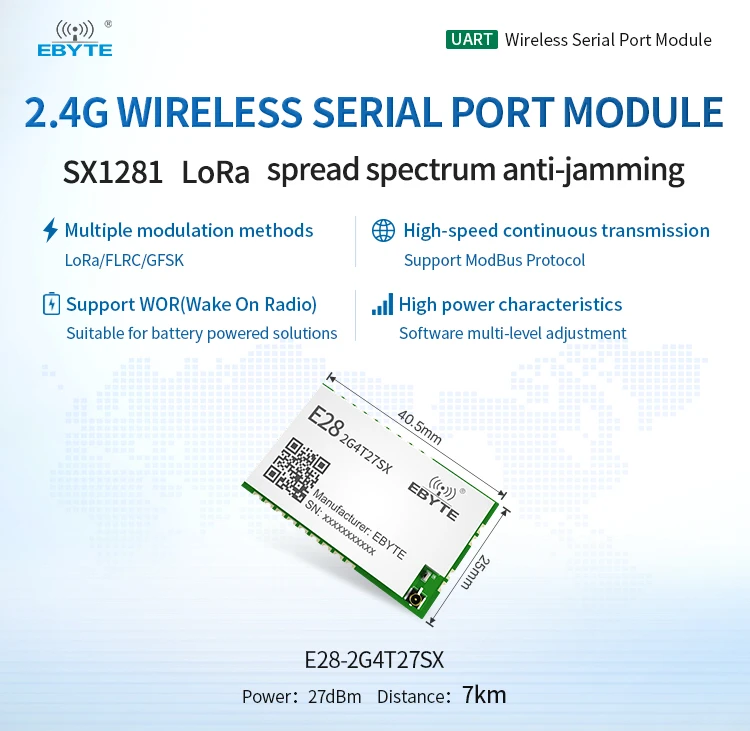 Отзывы о E28-2G4T27SX SX1281 2 4 ГГц 27 дБм 7 км беспроводной модуль LoRa UART FLRC GFSK Modbus RSSI