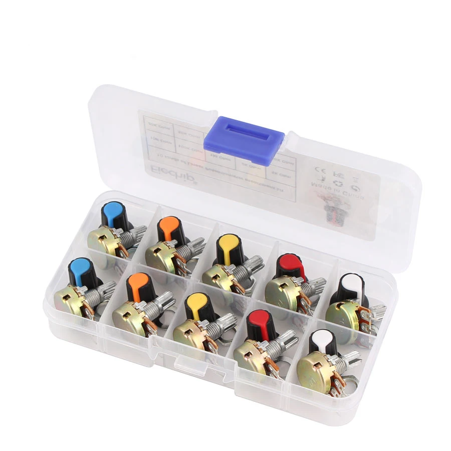 20 шт./лот набор светодиодных диммеров WH148 потенциометр B1K 5K 10K 20K 50K 100K 500K 15 мм переключатель регулировки света набор 3pin с регулятором яркости Набор 10 значенийB1K 2K 5K 10K 20K 50K 100K 250K 500K 1M потенциометр x1pcs